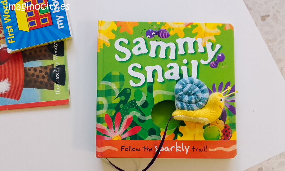 ¿Pero sabes cuál es nuestro libro favorito últimamente? Sammy Snail! Lleno de colores, animales, verduras y frutas 🙂