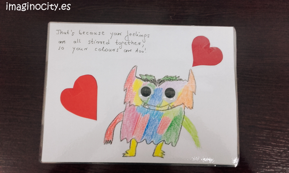 ¿Una de las mejores maneras de aprender sobre las emociones? ¡El monstruo de color! Leemos algunos extractos del famoso libro de Anna Llenas – The Colour Monster´- e hicimos nuestros propios monstruos, cada uno representando diferentes emociones. Pink – in love, green – calm, blue – sadness, yellow – happiness y red – anger.