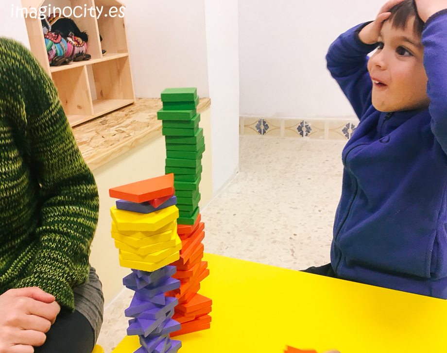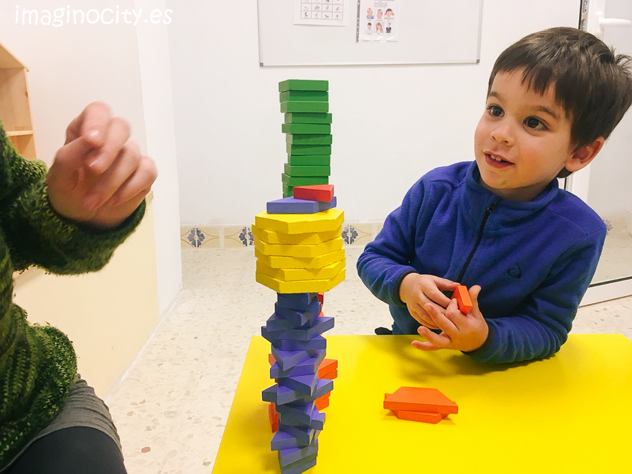 Despues, jugamos más con los colores, tratando de construir la torre más alta con bloques de madera. No fue fácil, ¡pero nos divertimos mucho!:)