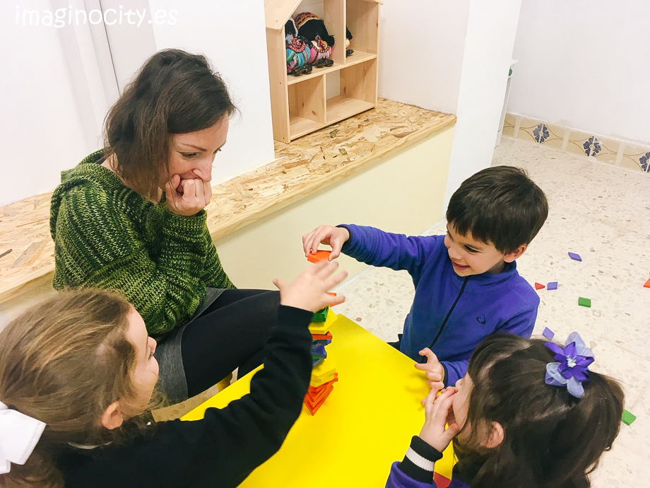 Later, we played more with the colors, trying to build the tallest tower with blocks of wood. It was not easy, but we had lots of fun! 🙂